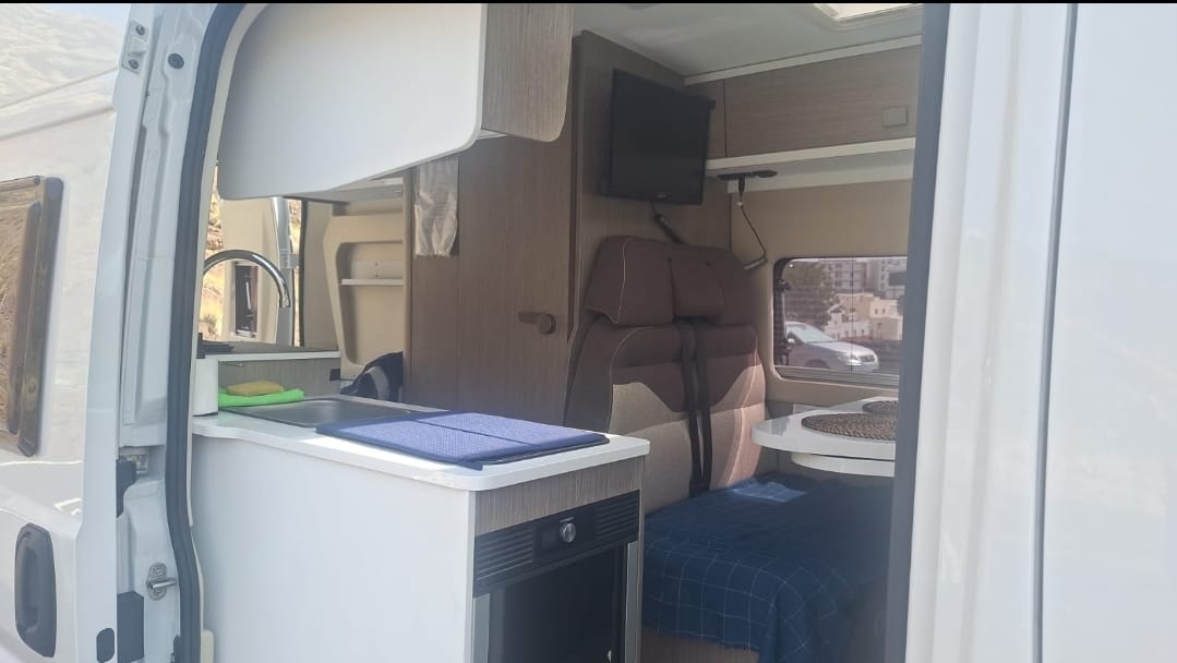 Equipada con cocina, W.C, ducha, calefacción, nevera con congelador, zona de descanso y autonomía energética, esta camper te permite disfrutar de tus viajes sin preocupaciones. Solo elige tu destino, sube a bordo… y deja que la aventura empiece.