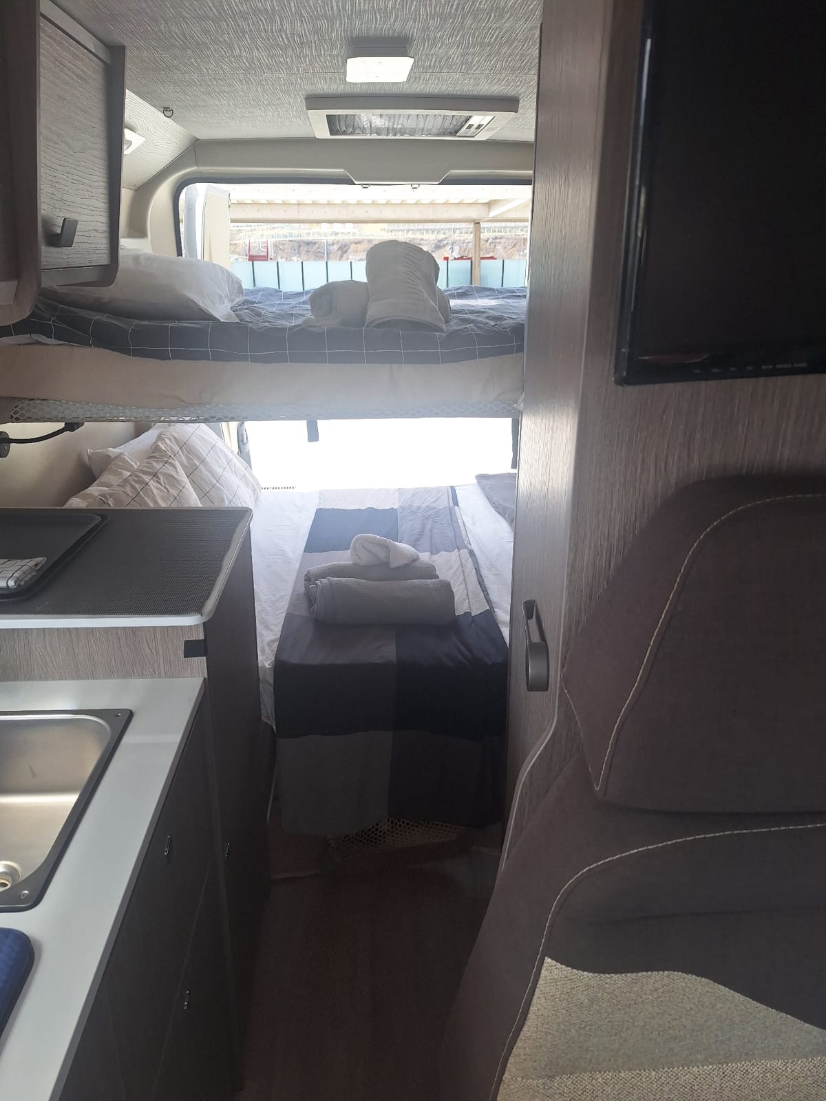 La Camper Benimar está lista para acompañarte en rutas por costa, montaña o pueblos con encanto. Una casa móvil equipada, cómoda y autónoma… pensada para viajeros que quieren libertad sin renunciar a la comodidad.